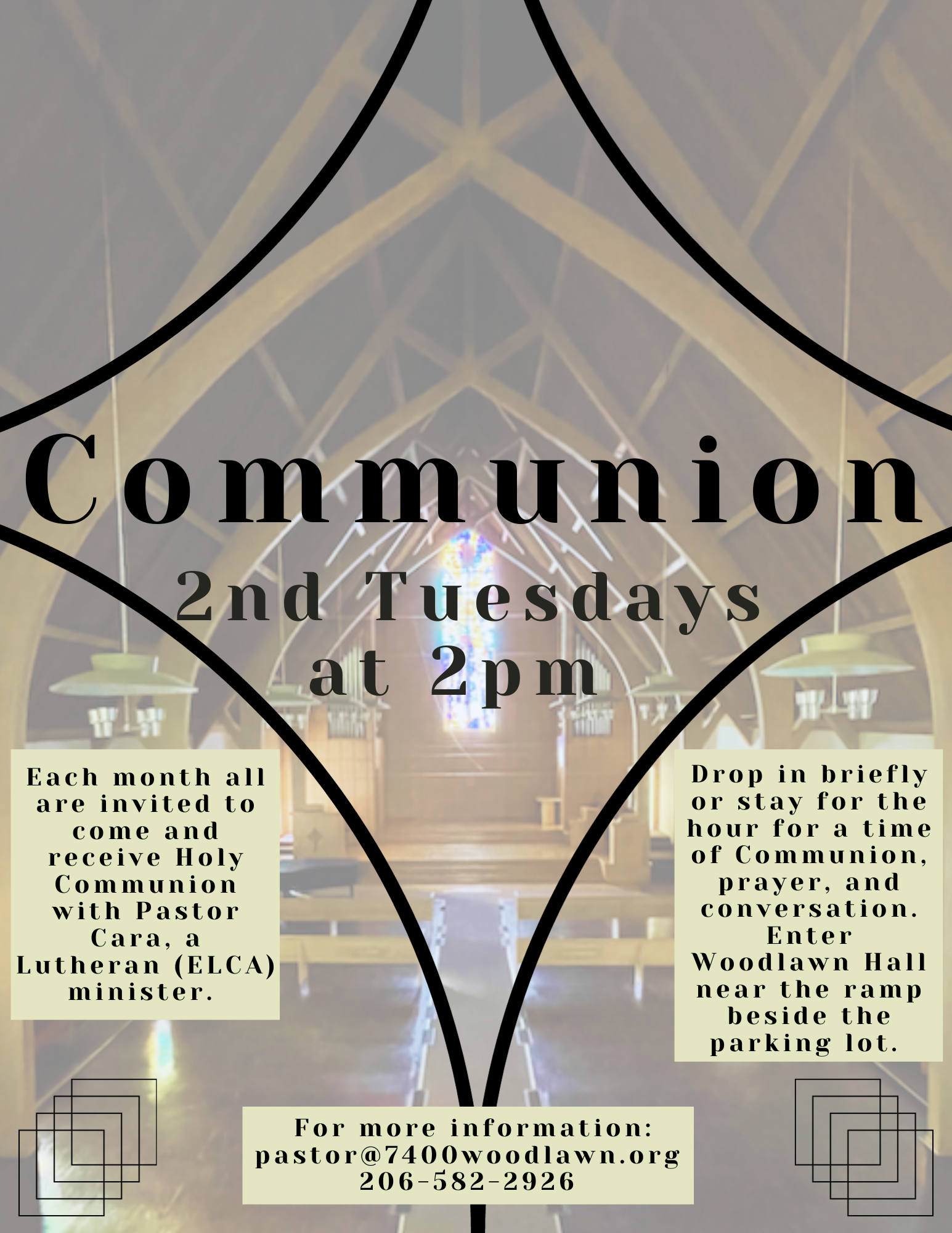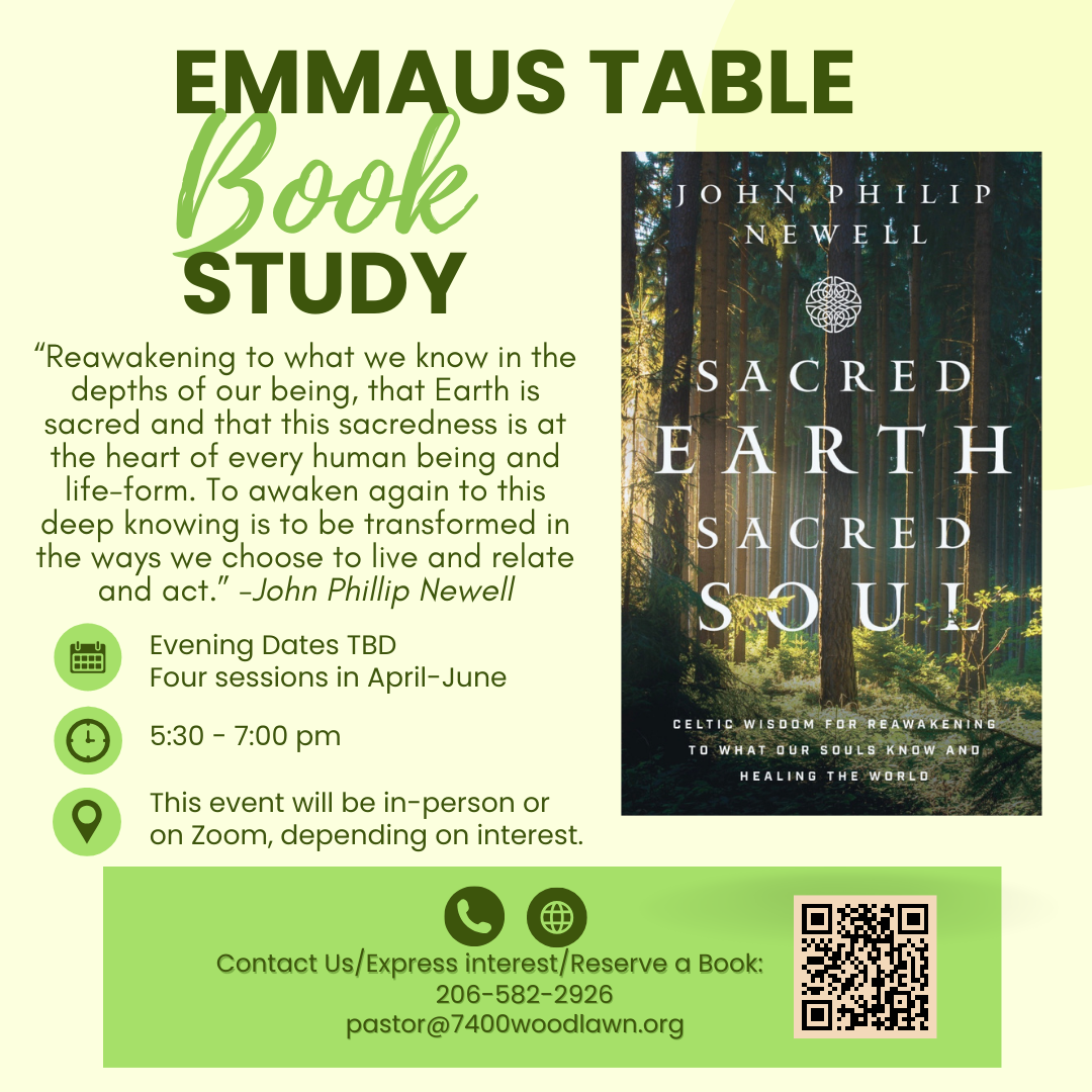 We welcome you to take part in any or all parts of the service, as you wish. Reach out to Pastor Cara (pastor@7400woodlawn.org or 206-582-2926) with any questions.